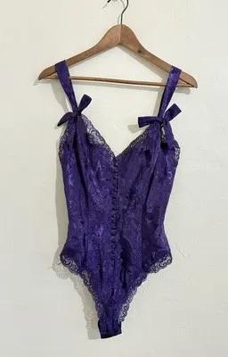 VINTAGE 80 Victoria Secret SATIN PURPLE BODYSUIT Teddy BOWS...