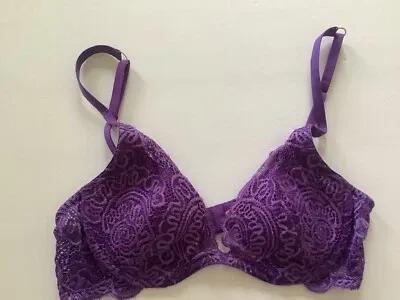 VINTAGE VICTORIA'S SECRET Bra Purple Lace Lightly Lined...