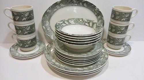 Display an Era!! Vntg White/Green Vine Design/Ceramic...