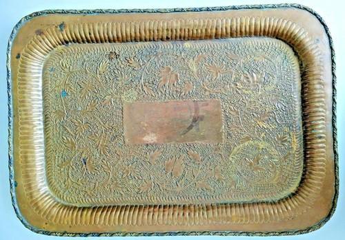 Antique Copper 17 x 12 Rectangle Tray Hand Hammered Vine Scroll...