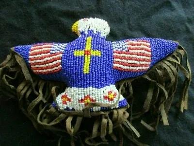 VINTAGE NATIVE AMERICAN BEADED LEATHER FETISH, EAGLE AMULET...