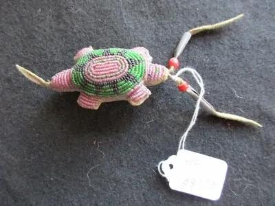 VINTAGE NATIVE AMERICAN BEADED LEATHER FETISH, TURTLE AMULET...