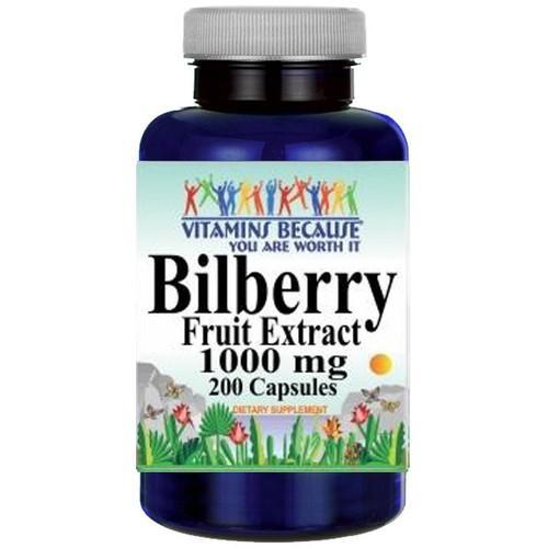 Bilberry Fruit Extract 1000mg 200 Caps (Vaccinium Myrtillus...