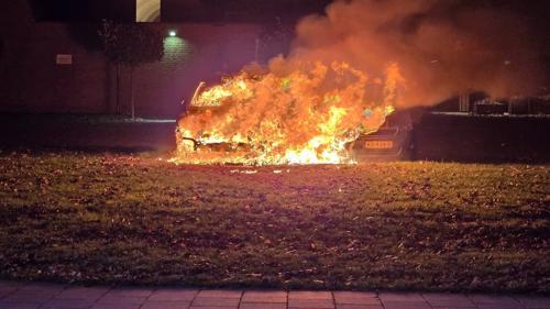 Auto brandt volledig uit in woonwijk; vermoeden van...