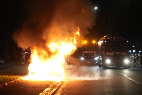 Auto brandt volledig uit aan de Zangvogelweg; politie vermoedt...
