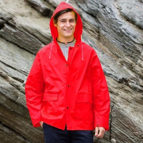 Rode unisex regenjas met drukknoopsluiting voor volwassenen...