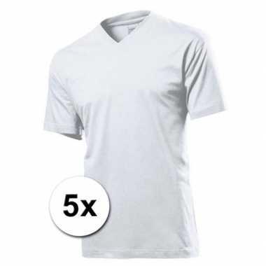 5x voordeel pakket v-hals t-shirts wit | Witte-t-shirts-heren.nl