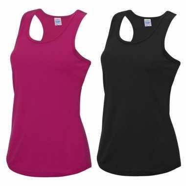 voordeelset - fuchsia roze en zwart sport singlet voor dames in...