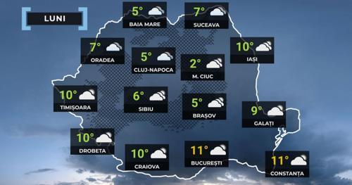Vremea vineri, 28 noiembrie. Temperaturi maxime de 13 grade şi...