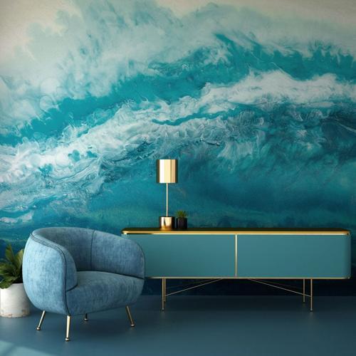 Blue Modern Ocean Wallpaper Mural - Feathr Wallpapers