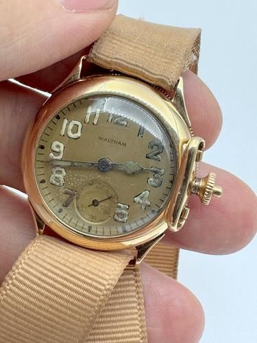 ULTRA RARE WALTHAM TRENCH WWI WATCH /E CROWN GUARD 14K SOLID...