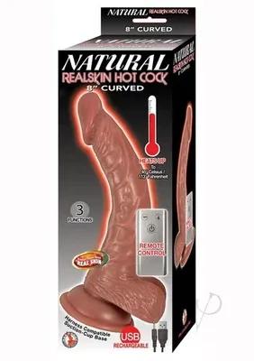 Natural Realskin Hot Cock Curved Warming Rechargeable Dildo 8in...