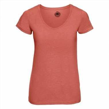 Basic v hals t shirt vintage washed koraal oranje dames...