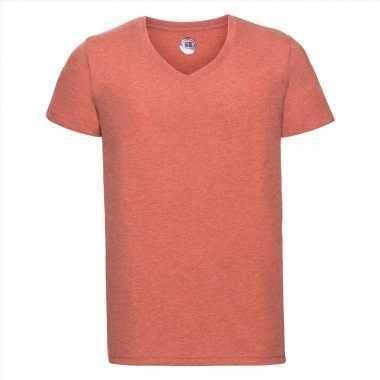 Basic v hals t shirt vintage washed koraal oranje heren...