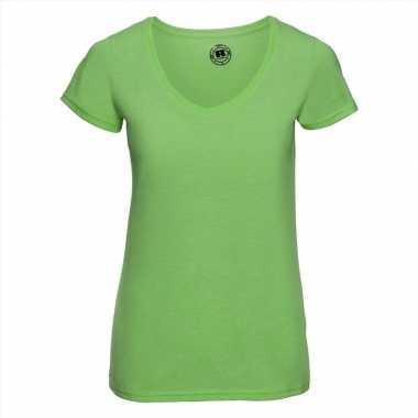 Basic v hals t shirt vintage washed lime dames...