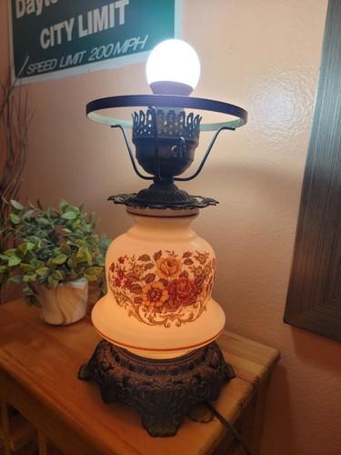 QUOIZEL 3-WAT SWITCH HURRICANE LAMP NO.1960-3 1/4 RUST ROSE VTG...