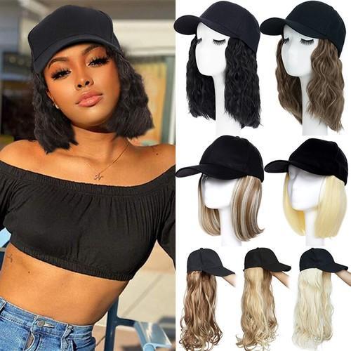 Baseball Hat Cap with Fake Hair Soft Long Wavy Hair Wigs Caps...