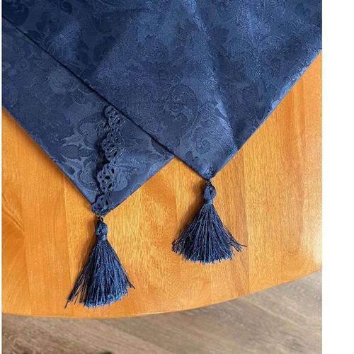 Blue Table Runner Jacquard Tablecloth Floral Tassel Wedding...
