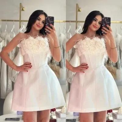 Boho Sexy Sleeveless Short Wedding Dresses with 3D Flowers...