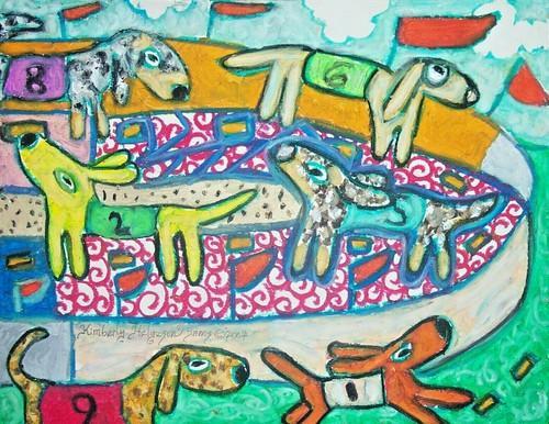 5x7 Dachshund Weiner Dog Races Art Print gift KSams modern folk...