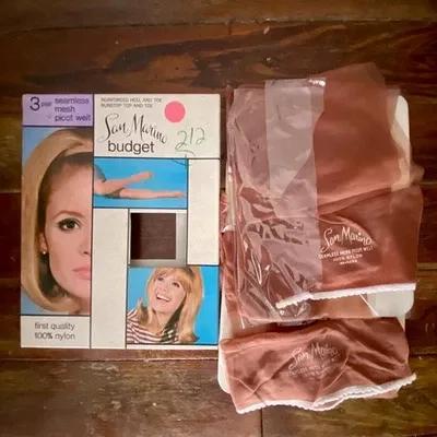 vtg 2 Prs SAN MARINO Seamless Mesh Picot Welt Nylon Stockings...