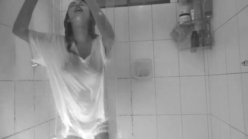 CeCe Rose getting her white see-through shirt wet in the shower...