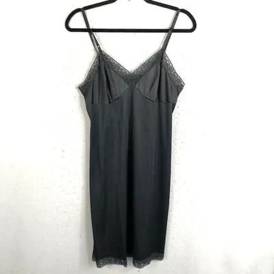 Vintage Vanity Fair Slip Dress Black Nylon Lace 36 Whimsy Goth...