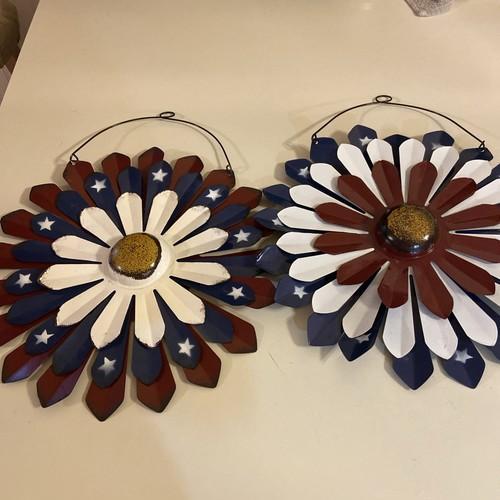 American Patriotic Red White And Blue Distressed Metal Tin Yard...