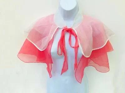 '40s / 50s salmon pink chiffon + white dotted collar short bed...