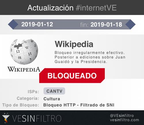 Wikipedia bloqueada en CANTV desde el 12 de Enero.