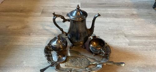 William Rogers Antique Silver Plate Tea Service Set, Bonus...