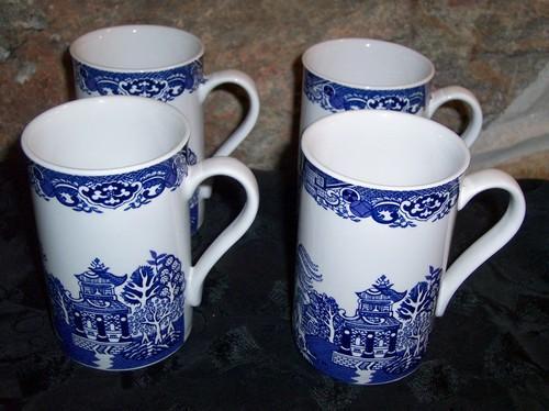 Set of 4 Blue Willow Churchill Tea Coffee Cups and Saucers Made...