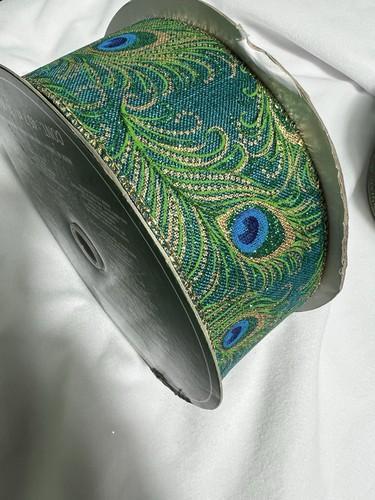 10 Yards 2.5 Inch Wired Ribbon Winter Peacock Teal Turquoise...