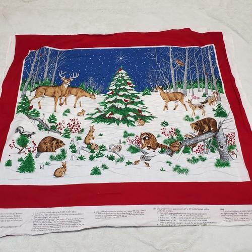 Vintage Wildlife Christmas Winter Tree Forest Animals Cotton...