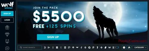 Wolf Winner Casino Review 2025 – $5,5000 + 125 Free Spins