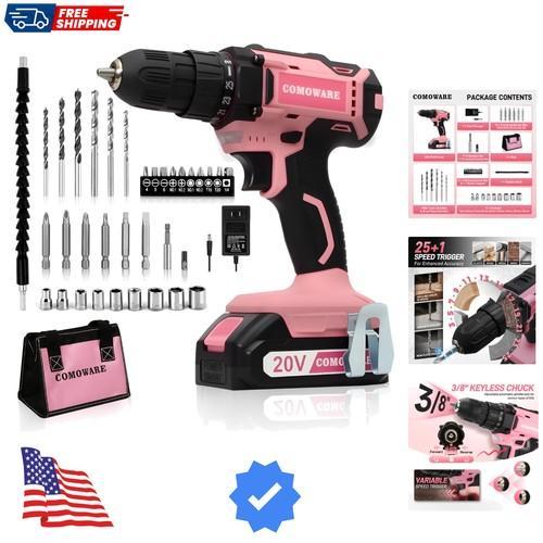 Cordless Drill Set, 20V Pink Power Drill Set for Women, 1...