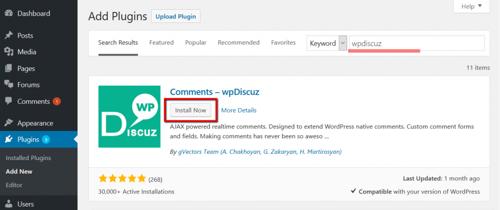 Dashboard Installation - wpDiscuz - WordPress Comment Plugin