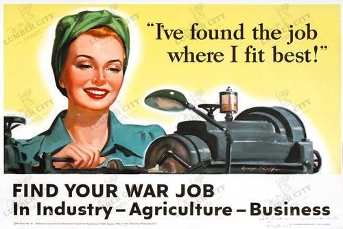 Find Your War Job 1943 WWII Woman Worker Poster Wall Art Print...