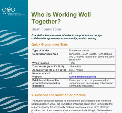 Who is Working Well Together? Bush Foundation - GEO