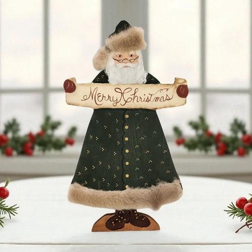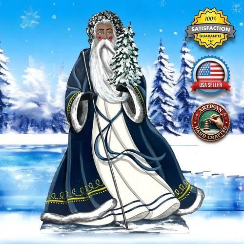 Artisan Blue Old World Santa Claus Folk Art Wooden Christmas...