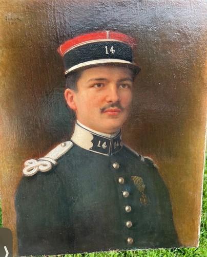 Antique Soldier Portrait Painting World War I France French...