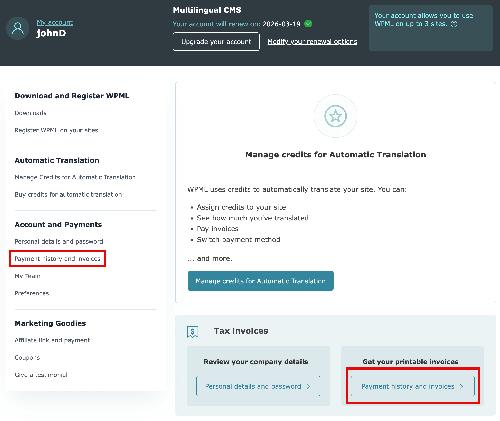 How can I get a WPML tax invoice and update my billing...