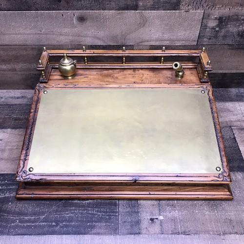 Antique Writing Desk Slope Front Hinged Top w/Brass Pad Inkwell...