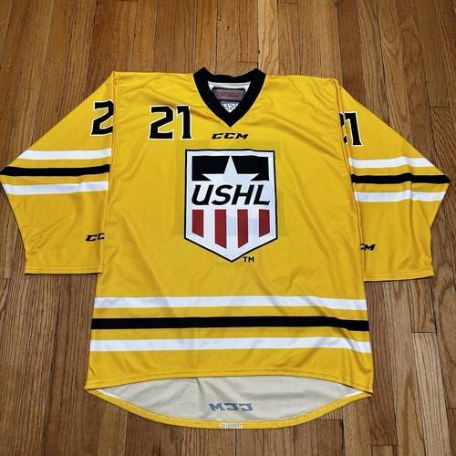 CCM USHL Mens Jersey Hockey Large USA Vintage Yellow 21 Game Worn