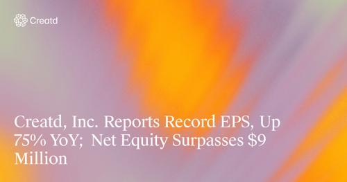 Creatd, Inc. Reports Record EPS, Up 75% YoY; Net Equity...